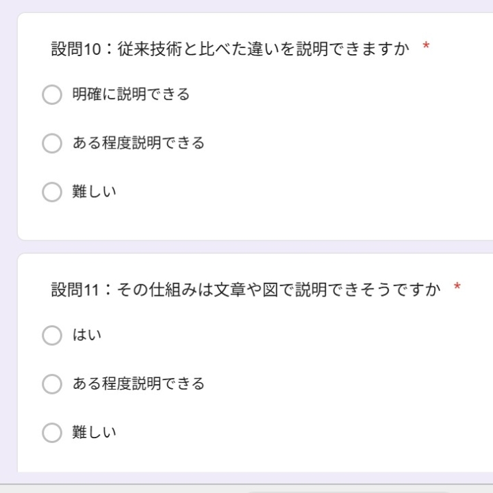 あらかじめ用意された設問に回答していただく形式で進みます。